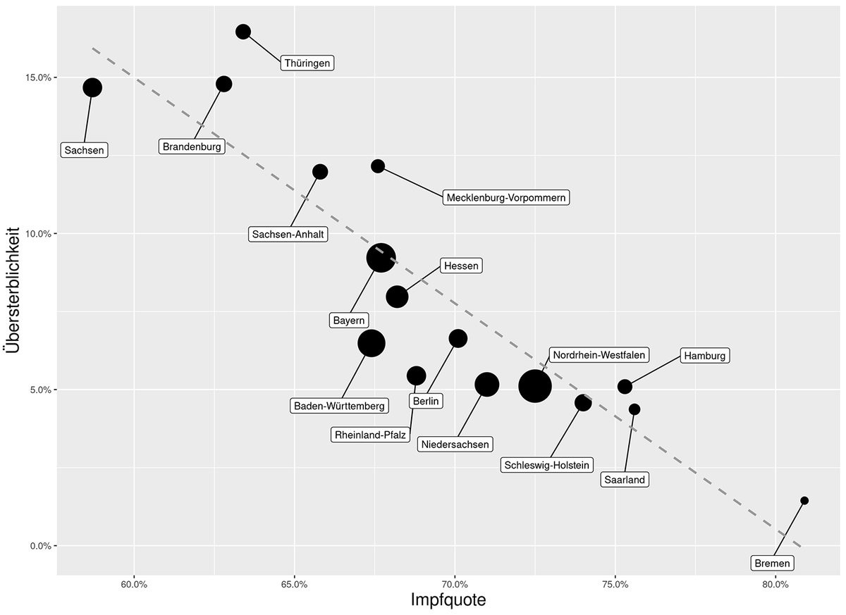 In 2021 wurde in 🇩🇪 eine hohe Übersterblichkeit beobachtet. Zeitgleich wurden mehr als 70% der Bevölkerung geimpft. Tatsächlich gibt es einen Zusammenhang! Er ist negativ. Fazit: #impfenschützt.