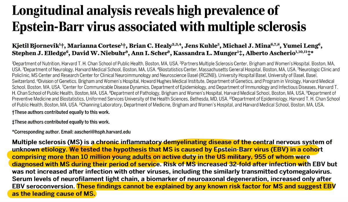 Ohne Epstein-Barr-Virus, kein MS. https://twitter.com/EricTopol/status/1481707694352330753