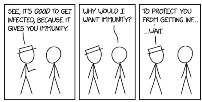 Hoffen dass sein Haus endlich abbrennt, damit es nicht mehr abbrennen kann, wäre rationaler als das. Das kann immerhin nicht nochmal abbrennen, Reinfektion ist möglich und jede Infektion ein Risiko. Erwartungswert des Schadens von 1 Infektion niedriger als 2 Infektion als 3... https://twitter.com/kchr_grr_krch__/status/1482090922422808579