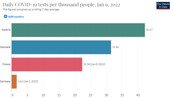 In Deutschland sollen PCR-Testungen nach roter Warn-App oder nach positivem Schnelltest massiv eingeschränkt werden, während in den Nachbarländern bis zu 25x so viele Tests durchgeführt werden können.