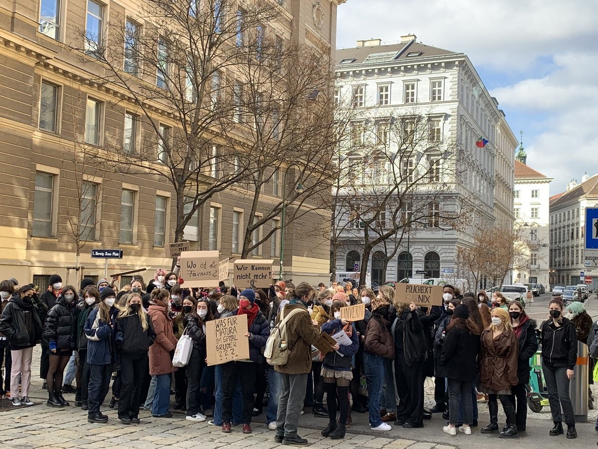 Die Schülerstreiks kommen aus Österreich? dieses Bild hier stammt auch aus Österreich. Wie kann es sein, dass angeblich in Österreich die Eltern für strengere Regeln demonstrieren? Nicht geimpfte Kinder von draußen zu schauen lassen, ist also noch nicht streng genug? #NichtMitUns