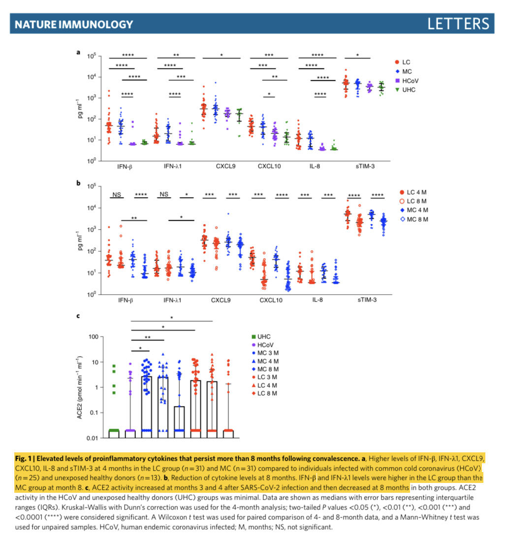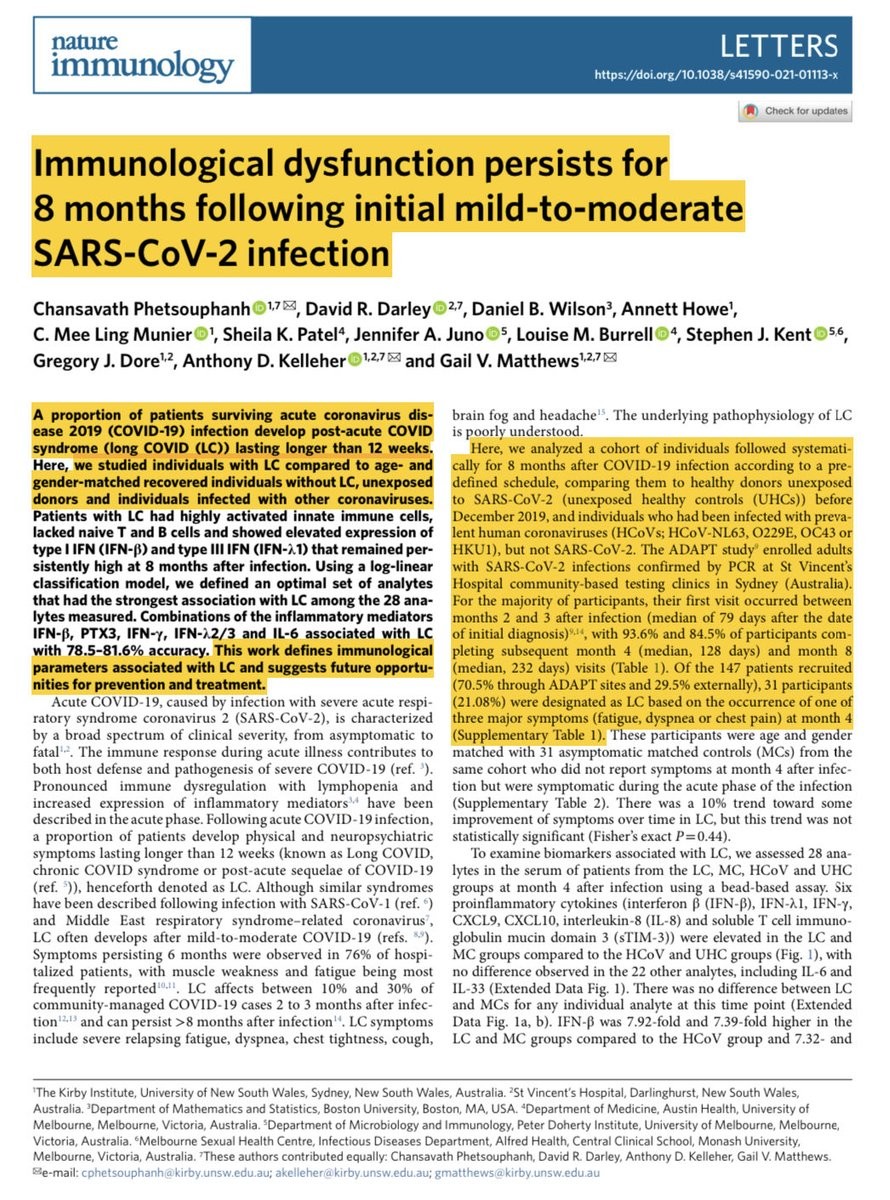@Nature study of N=147 (31 w LongCOVID) found Covid infection exerts unique & prolonged effects on our innate & adaptive immune system over 8 months later.