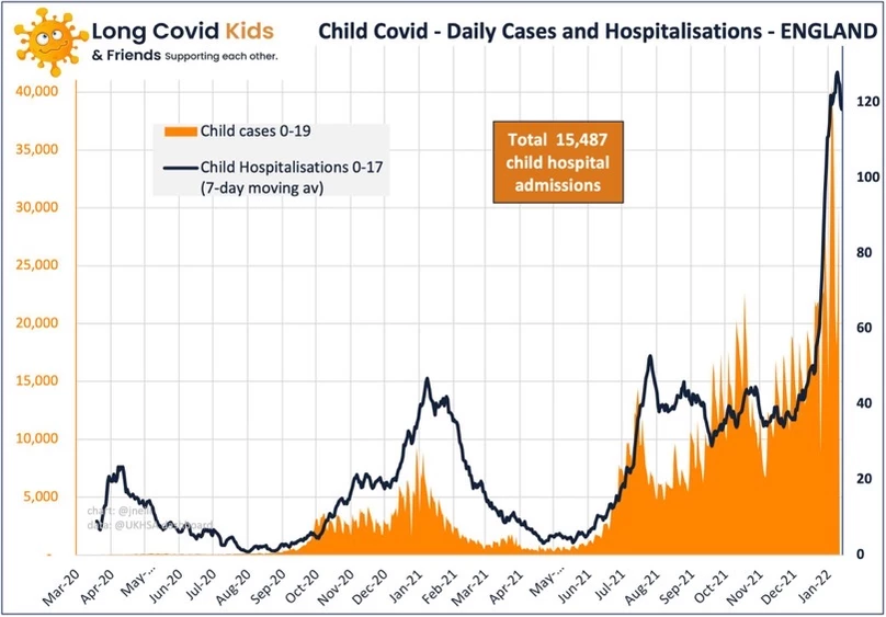 "Enttäuschend, wie wenig Aufmerksamkeit die enormen Zahlen von Krankenhausaufenthalten bei Kindern in England in den letzten Wochen erregen. >Mehr als 800 Aufnahmen/Woche sind bei Kindern nicht trivial, und ich hätte erwartet, dass dem mehr Aufmerksamkeit gewidmet wird" https://twitter.com/dgurdasani1/status/1483385953393729541