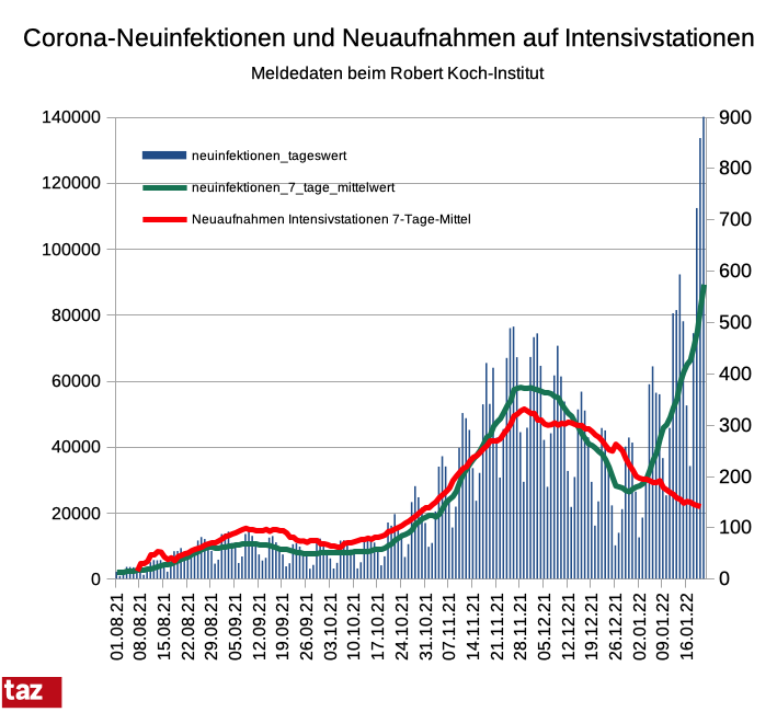Ursprungsbild: http://hamburg.de/corona-zahlen vor einem Monat (21.12.21), Graph bis heute 21.01.22 hinzugefügt.