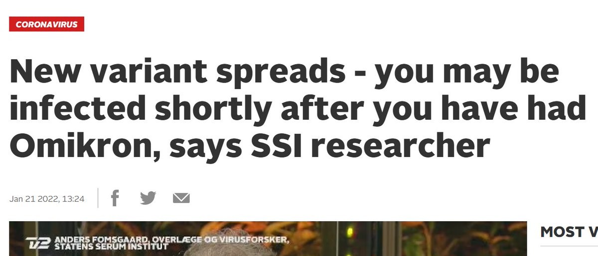 Virus researcher Anders Fomsgaard in Denmark, chief physician of Danish public health authority @SSI_dk says you can get infected with BA.2 after being infected with Omicron BA.1