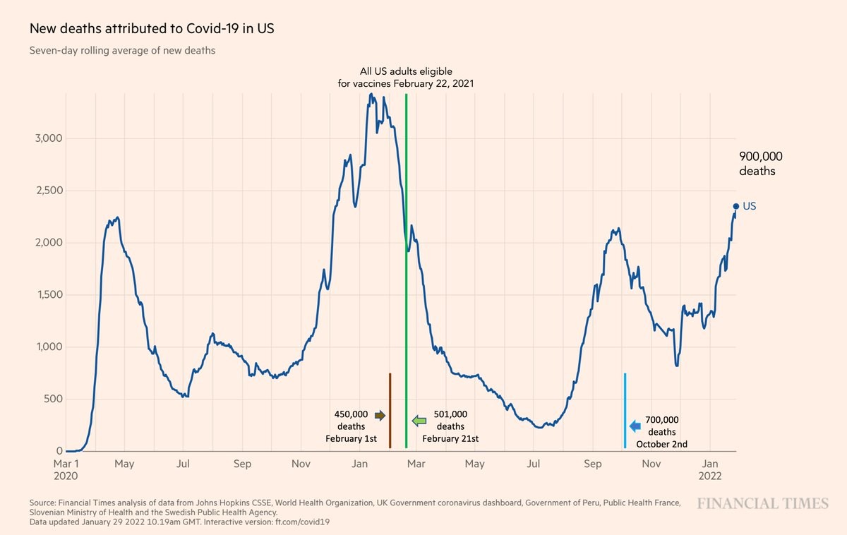 The US will hit the ignominious number of 900,000 Covid deaths in a week, half of these occurred well after vaccines were widely available