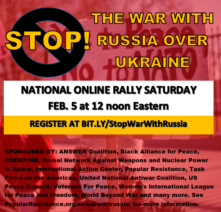 Register for the national online rally this Saturday at 12 noon Eastern http://Bit.ly/StopWarWithRussia