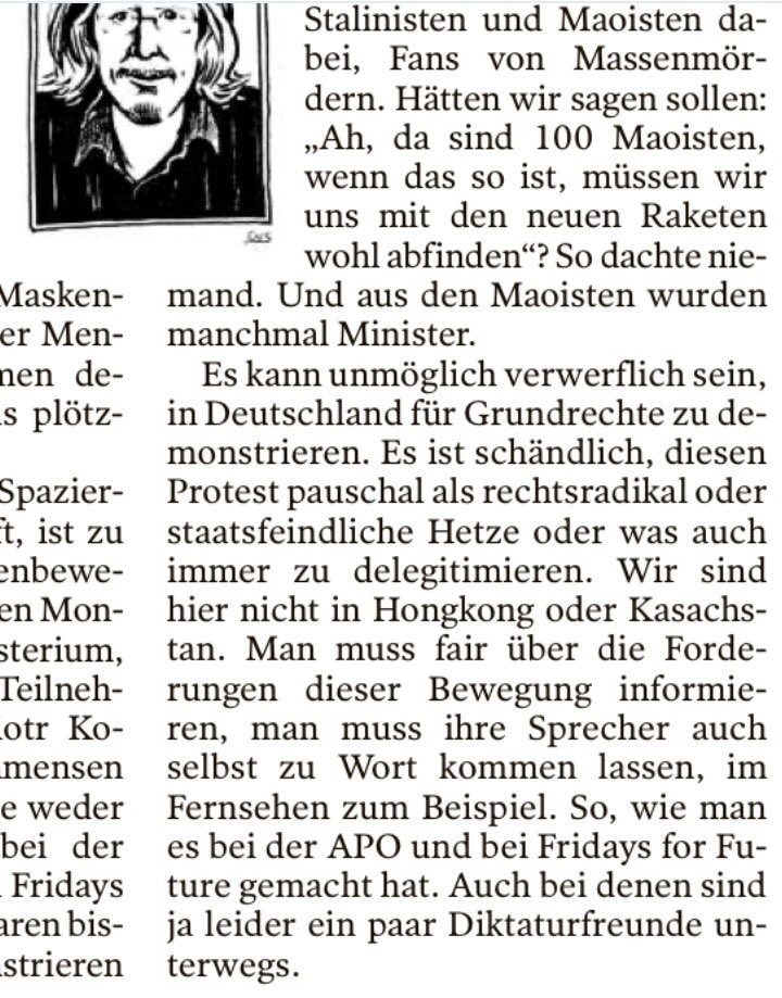 Lieber @Tagesspiegel, ja klar, Meinungsfreiheit, aber muss in einer einzigen Kolumne wirklich so viel falsch und abstrus sein wie in der heute von Harald #Martenstein über die Corona-Protestierenden? #Thread #FehlenderMindestabstand