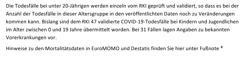 Jeder, der in einer Diskussion mit mir den Tod von mittlerweile 65 Kindern verharmlost und sagt, die waren ja eh alle vorerkrankt oder sagt, die seien nur mit Covid und nicht an Covid verstorben, wird ohne weitere Diskussionen geblockt