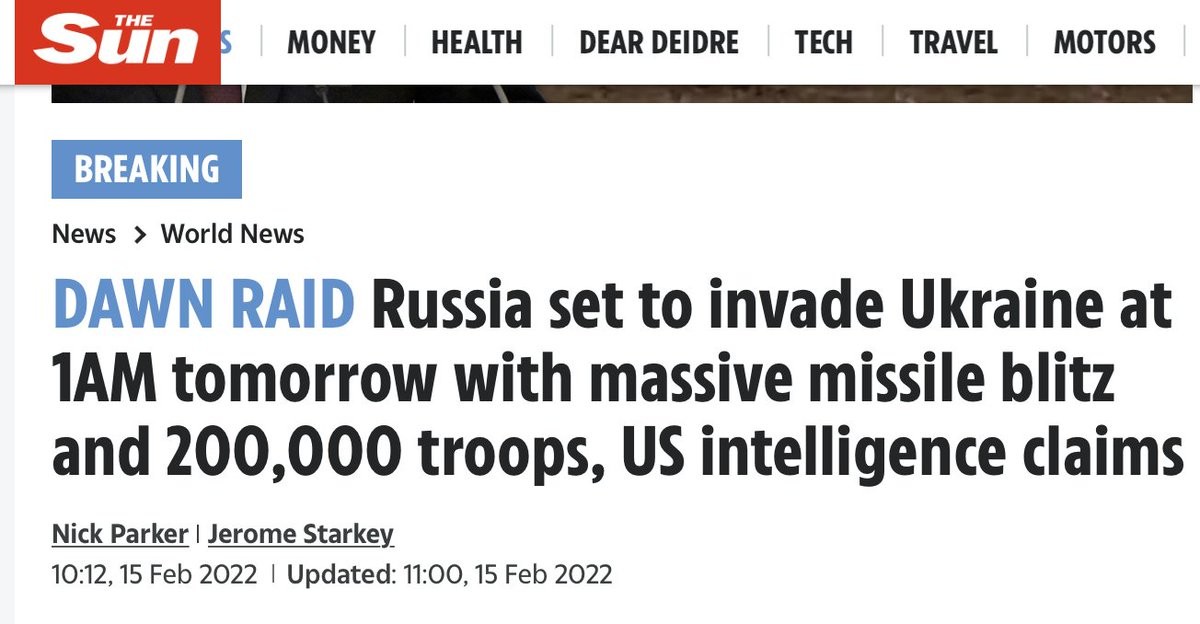 - laut US-Geheimdiensten sollte heute die russ. Invasion starten. Natürlich passierte nichts;