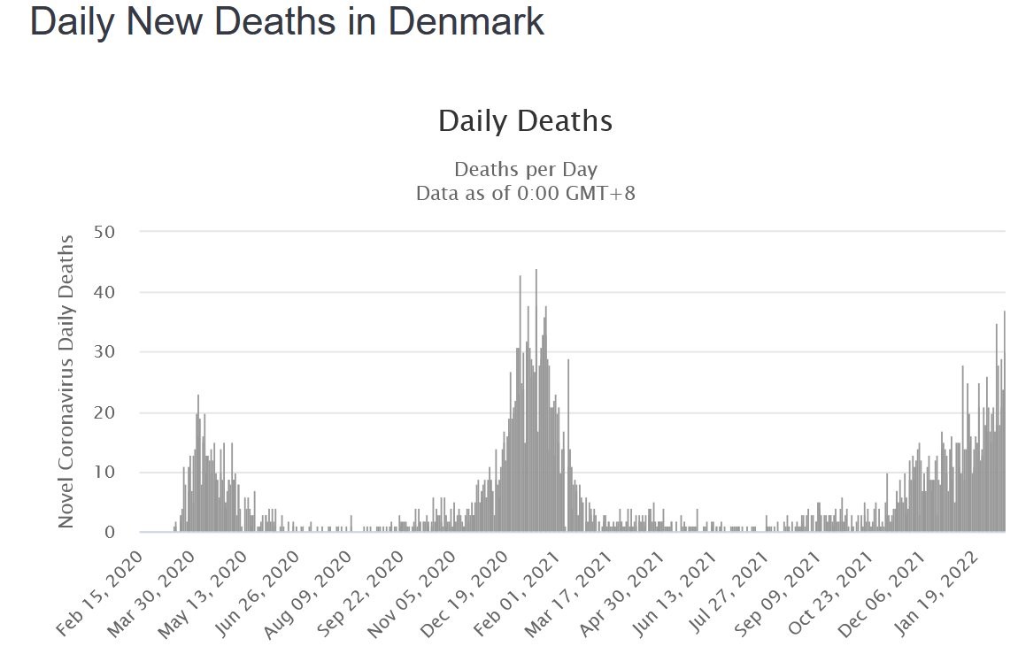 #Dänemark hat so viele #Corona-Tote an 1 Tag wie seit Januar 2021 nicht. Exponentieller Anstieg. Wer diese Politik für Deutschland und Europa will, verursacht horrende Schäden für Menschen und Wirtschaft.