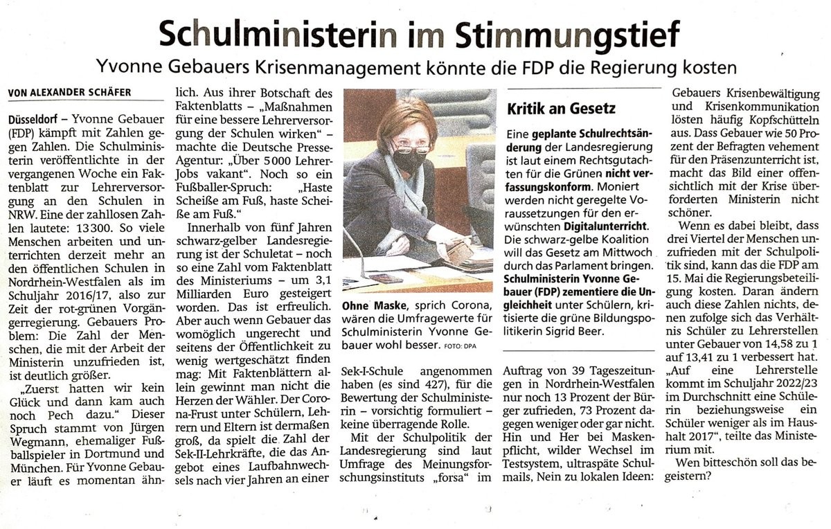 #NRW-Schulministerin #Gebauer im Stimmungstief