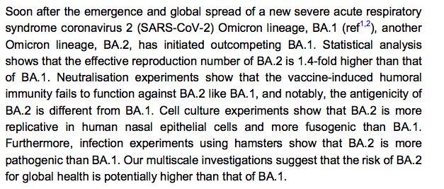 BA2: looks likely to get its own Greek letter as it's so different from BA1: has been found to be better at causing disease, more infectious, and better at evading immunity than BA1.