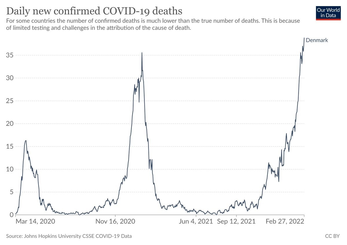 In Dänemark waren die Covid19-Todeszahlen noch nie so hoch wie jetzt mit diesem milden Omikron.