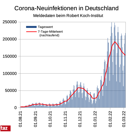 Die #Corona-Zahlen am Freitag zeigen erstmals seit 3 Wochen wieder steigende Infektionen - offenbar wegen der #Omikron-Variante BA.2. Auch die Zahl der Toten ist gestiegen, die #Hospitalisierungsrate bleibt hoch, aber stabil. Alle Details im folgenden Thread. (1/x)