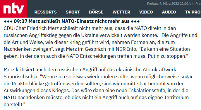 Das habe ich jetzt erst gelesen. Es ist wohl ganz aktuell. Putin sagte, dass jedes Land das eine #Flugverbotszone etablieren will, als sofortiger Kriegsgegner betrachtet wird. Ganz egal ob es NATO-Mitglied sei.