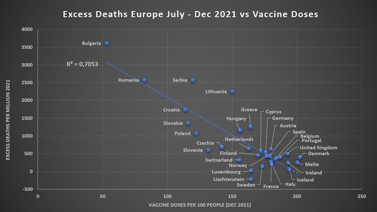 Übersterblichkeit vs Anzahl der verabreichten COVID19 Impfungen