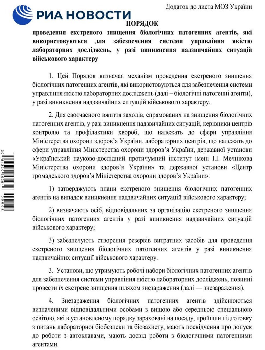 BREAKING: Russia publishes documents which show Ukraine was working on biological weapons near russian borders — such as Anthrax and Plague & that the pentagon has instructed to destroy them — violating article 1 UN prohibitio…