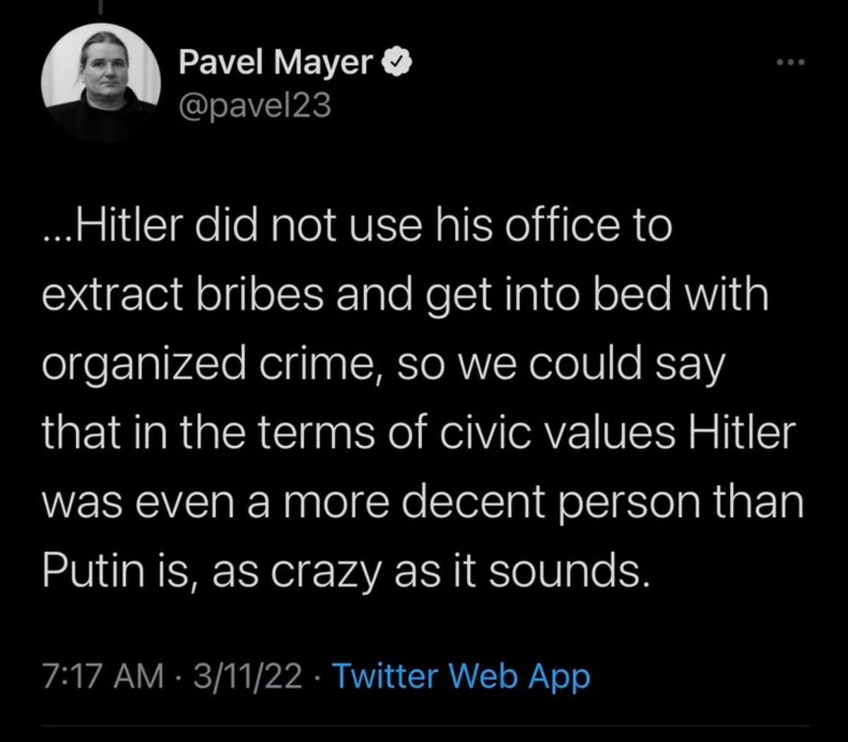 More arguments for why Hitler, whatever his faults, wasn't as bad as Putin.