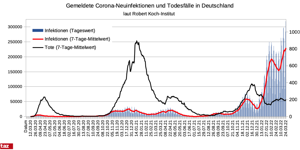 Die #Corona-Zahlen am Donnerstag mir einem weiteren Rekord: erstmals mehr als 300.000 Infektionen. Auch die Zahl der Toten steigt wieder. Dafür sinkt in der Tendenz die #Hospitalisierungsrate. Details dazu wieder im folgenden Thread. (1/x)