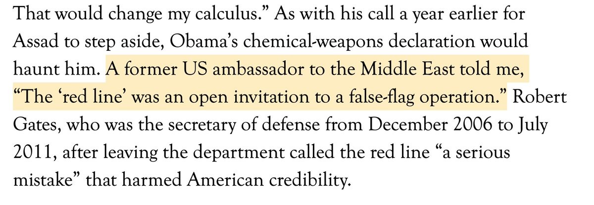 In Syria, Obama's chemical weapons "'red line' was an open invitation to a false-flag operation," a US diplomat told Harpers.
