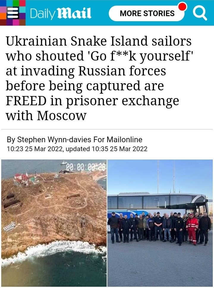 Remember the Snake Island sailors who died as "heroes" after telling the Russians to F- off? They were alive and well, and they've now been freed.