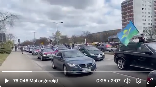 So what do we see at today pro-Russian rally in Berlin? The flags of: a) Russian Airborne troops (raped women in ); b) USSR (killed millions of Ukrainians); c) Russian Empire black-gold-white flag (a popular flag of Russian neo-Nazis, compare with a pic from Moscow)