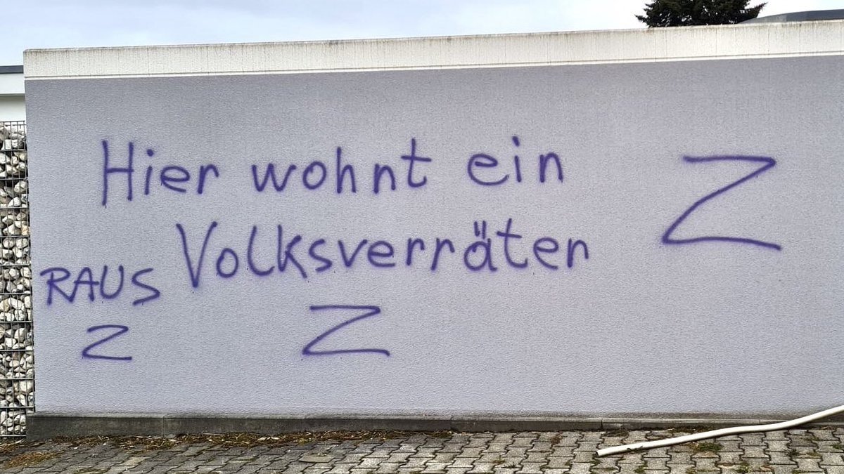 Sowas finden unsere Kommunalpolitiker, die sich ehrenamtlich in der Ukraine- und Flüchtlingshilfe engagieren, an ihrer privaten Hauswand, wie heute Morgen ein Freund aus Bayern.