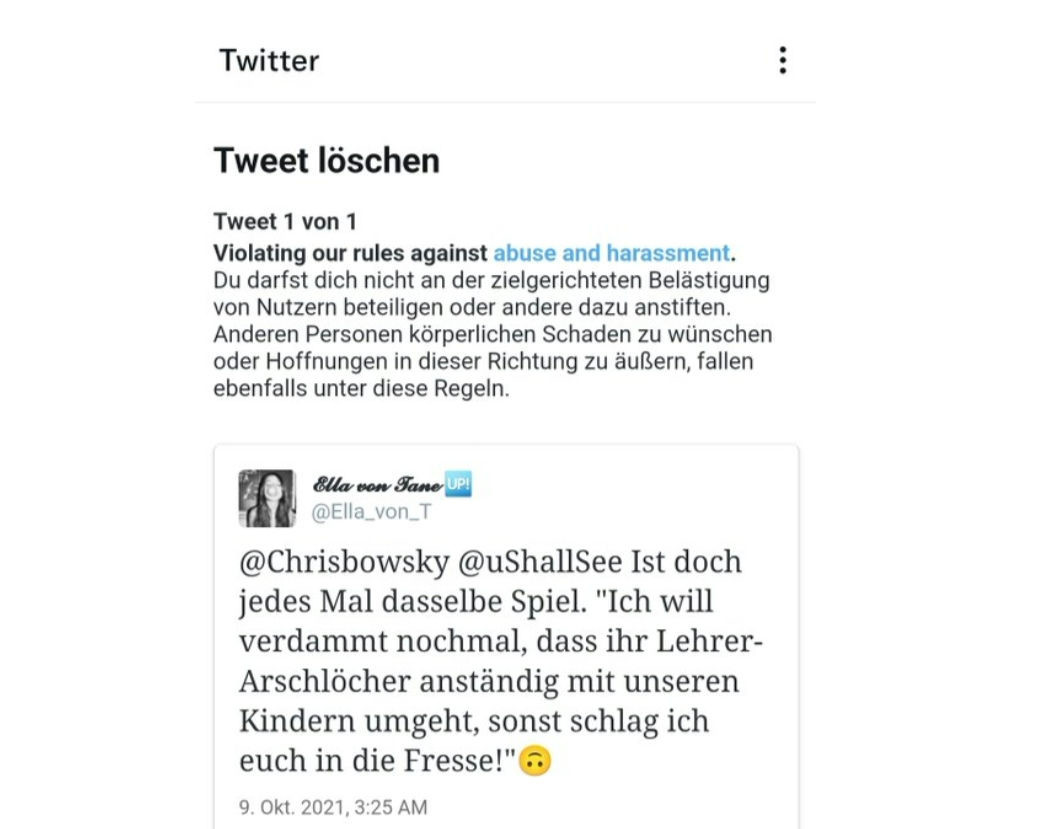 wieder freizugeben. Sie wird zu Unrecht gesperrt. Sie ist selber Lehrerin und es wird von Twitter falsch ausgelegt.