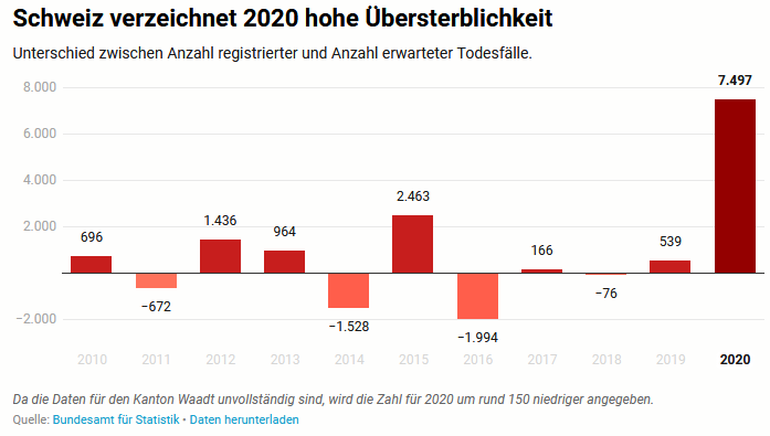 #Übersterblichkeit in der Schweiz gegenüber der Schätzung zu Beginn des Jahres: 11% (+7.500 Tote)