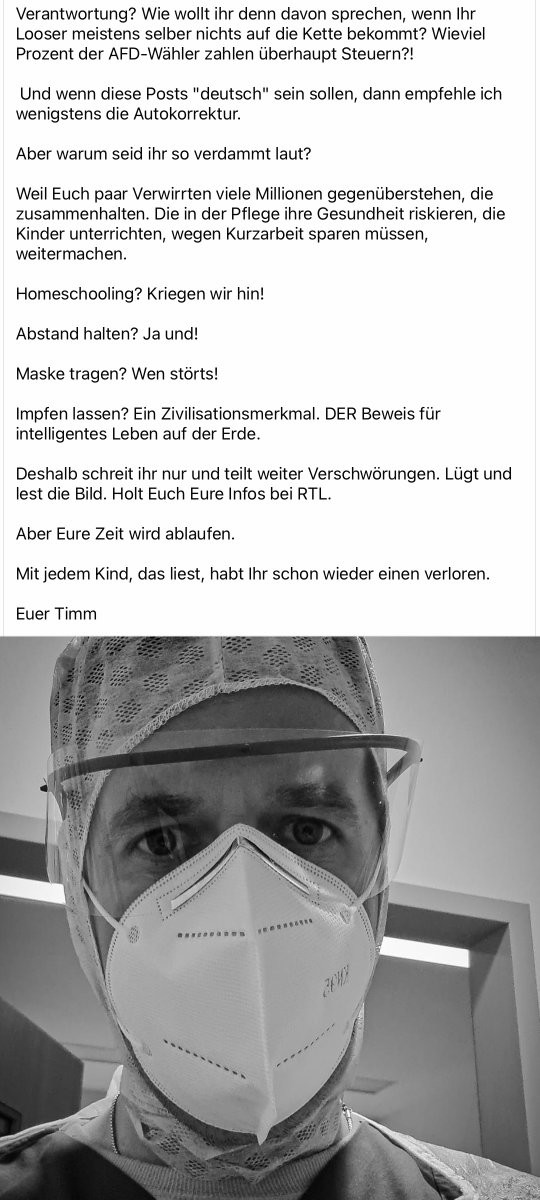 Hörte gerade, dass nicht wenige Professoren an Berliner Hochschulen derzeit auf Präsenzprüfungen bestehen, so lange es erlaubt ist, und weil nicht richtig gezählt wird, bleibt es erst mal auch erlaubt. Ist nur ein kleines Beispiel dafür, warum sich trotz Lockdown Leute anstecken.