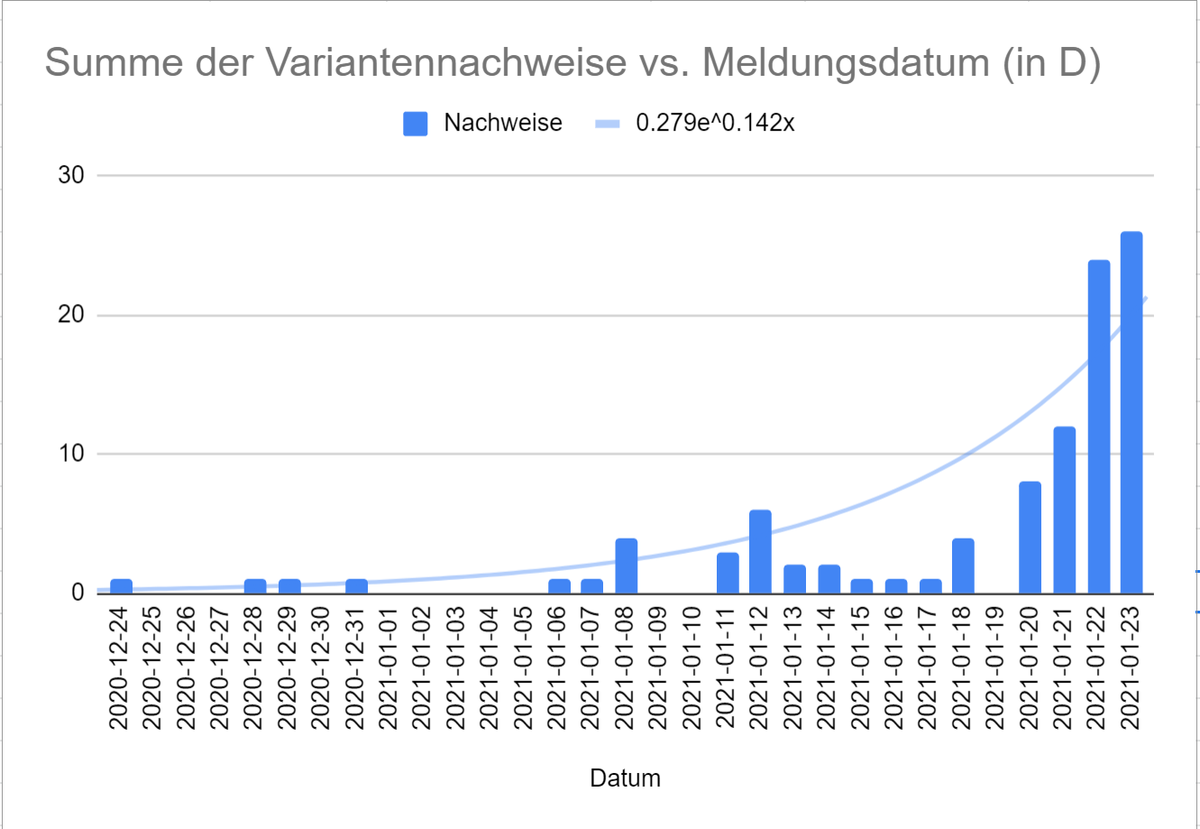Zahl der Variantennachweise (ENG, BRA, SA) in Deutschland nimmt exponentiell zu.