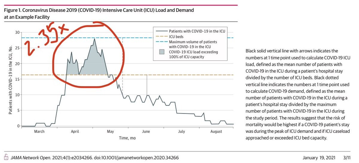 ➡️Even when ICU is not overloaded at 75-100%, there is 67% higher risk of death. https://jamanetwork.com/journals/jamanetworkopen/fullarticle/2775236?utm_source=silverchair&utm_campaign=jama_network&utm_content=covid_weekly_highlights&utm_medium=email