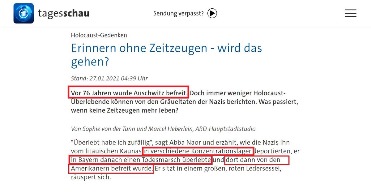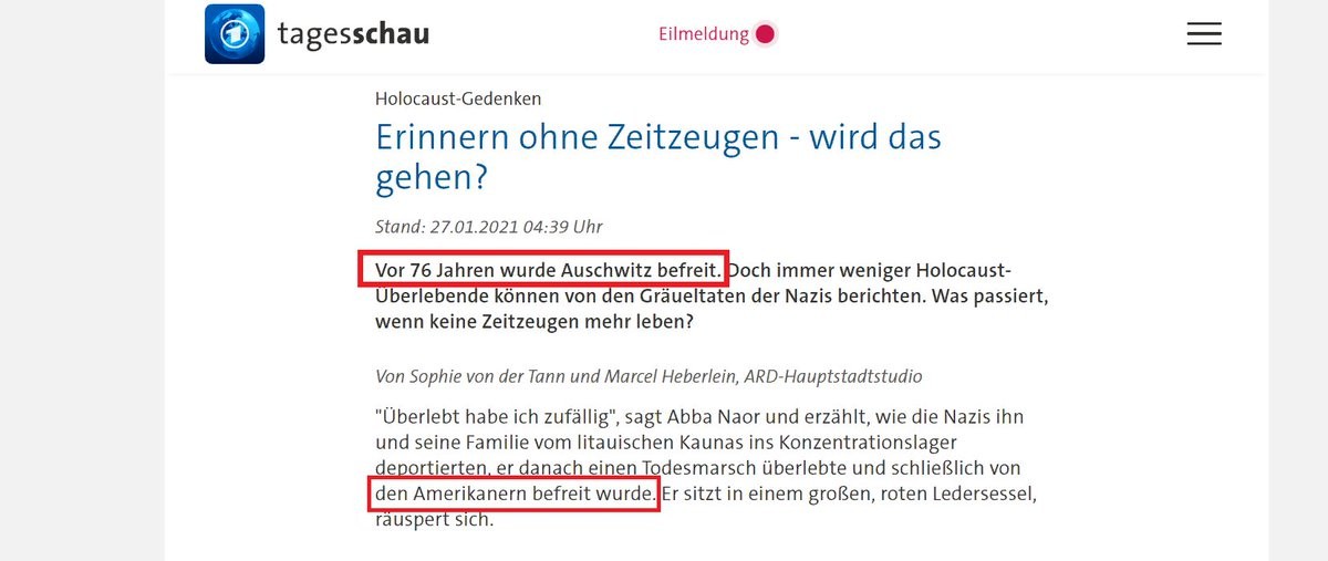 Etwas eindeutiger, wobei sowjet.Soldaten als Befreier von #Auschwitz weiter verschwiegen werden
