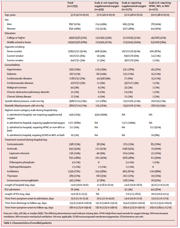 Longcovid Studie mit stationären Covid Patienten aus Wuhan, Datenpunkt 6 Monate nach Entlassung
