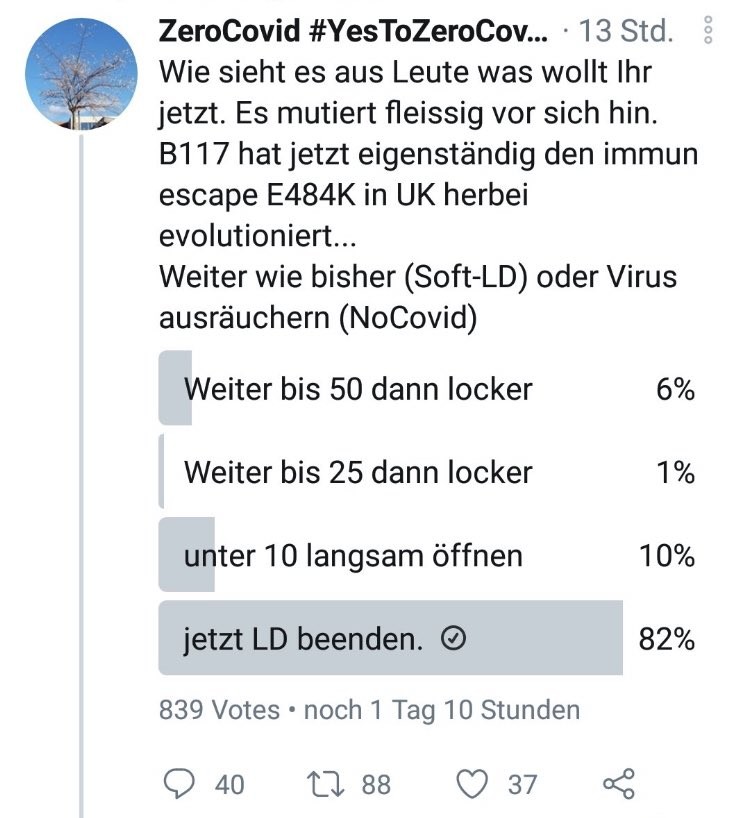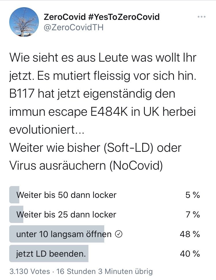 Die Abstimmung benötigt Korrektur, da waren jede Menge Möchtegernmörder dran... https://twitter.com/ZeroCovidTH/status/1356471223656538112