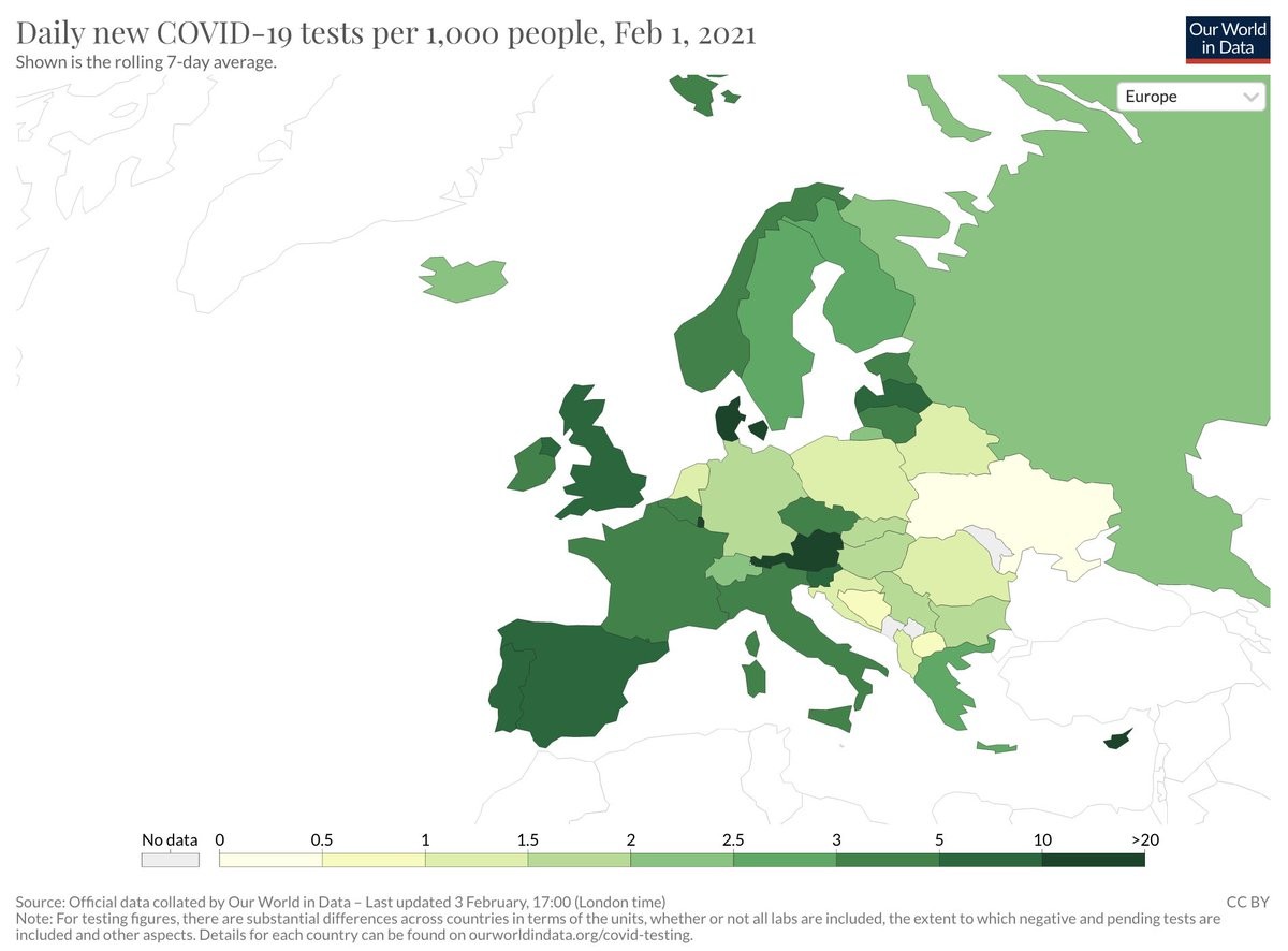 Deutschland testet so wenig wie sonst nur (Süd-)Osteuropa.