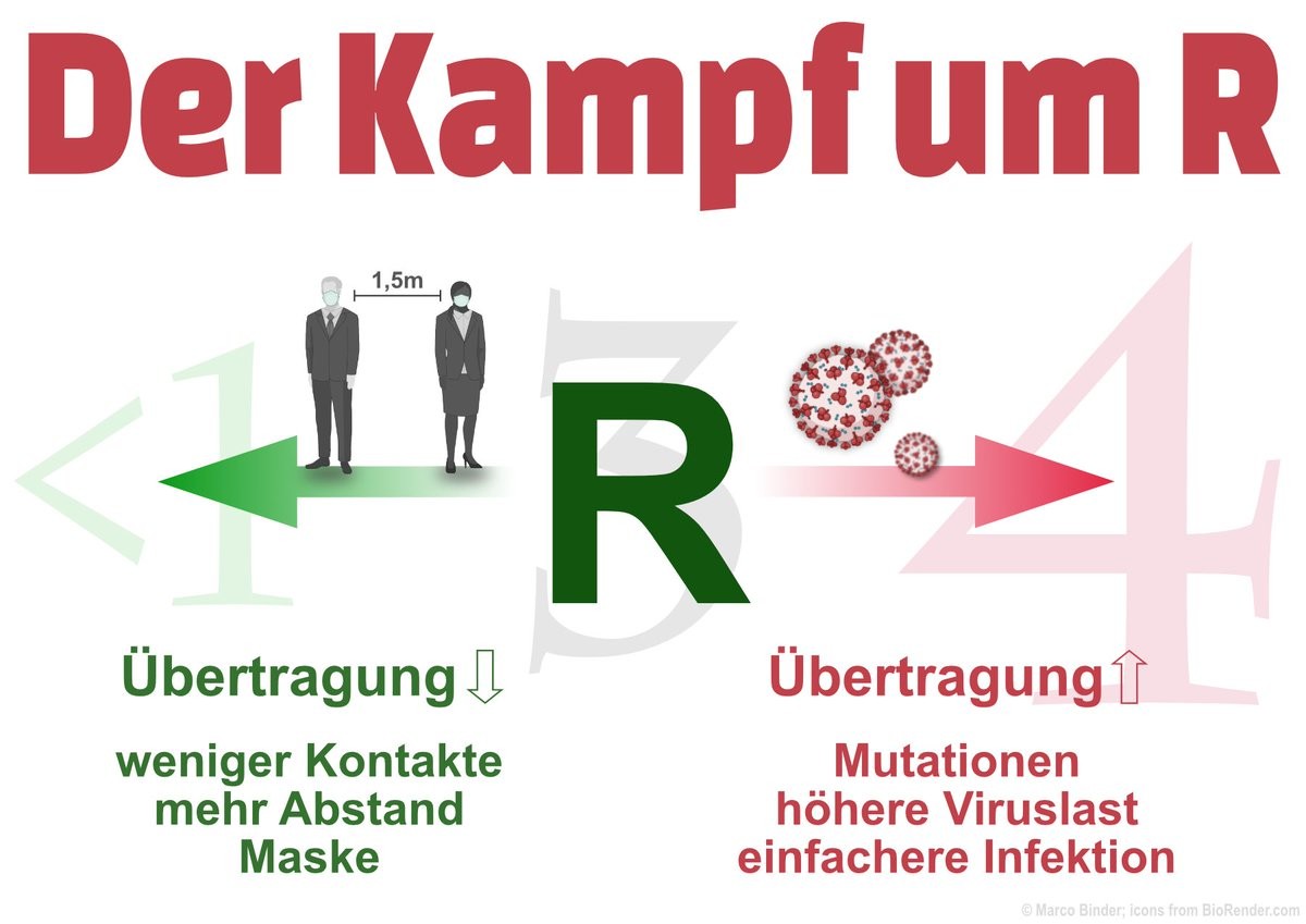 Der Kampf um R– ich möchte einmal versuchen darzustellen, wie bei einer Epi-/#Pandemie letztlich dieser eine Wert „R“ bestimmt, ob und wie sich die Infektion ausbreitet und wie beide Seiten– Mensch *und* Virus– versuchen, R zu ihren jeweiligen Gunsten zu verschieben! #COVID19