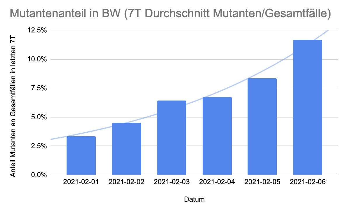 Hervorragend systematischen Daten aus BaWü zeigen: Mutanten-Anteil bereits bei 12% - und das im Schnitt über die letzten 7 Meldetage.