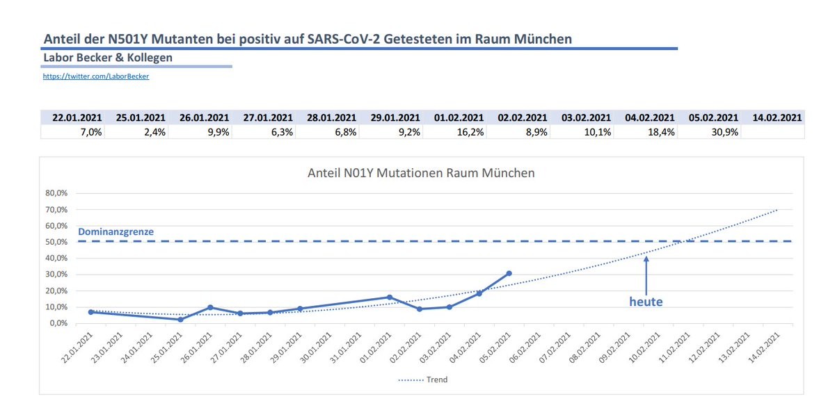 Das @LaborBecker testet den Anteil der Corona-Mutationen im Raum #Muenchen nach und veröffentlicht die Daten täglich auf ihrem Twitter-Account.