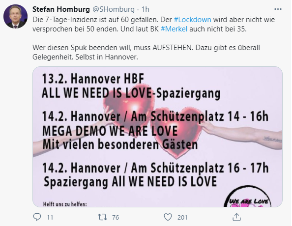 er ruft zum Querdenker-Spaziergang heute und morgen in Hannover auf
