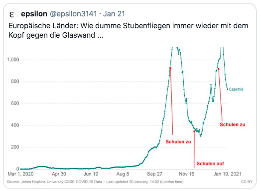 Stell dir vor du bist MP u die Wissenschaft warnt im Okt vor einem exp. Wachstum u viele Tote. Einer dieser Experten sitzt mit in der MPK u sagt "Es ist nicht 5 vor 12, sondern 12", aber die MPs ignorieren ihn. Es sterben daher 30k Menschen.Achja, Kritik daran ist ja unerwünscht. https://twitter.com/ManuelaSchwesig/status/1360344434504830982