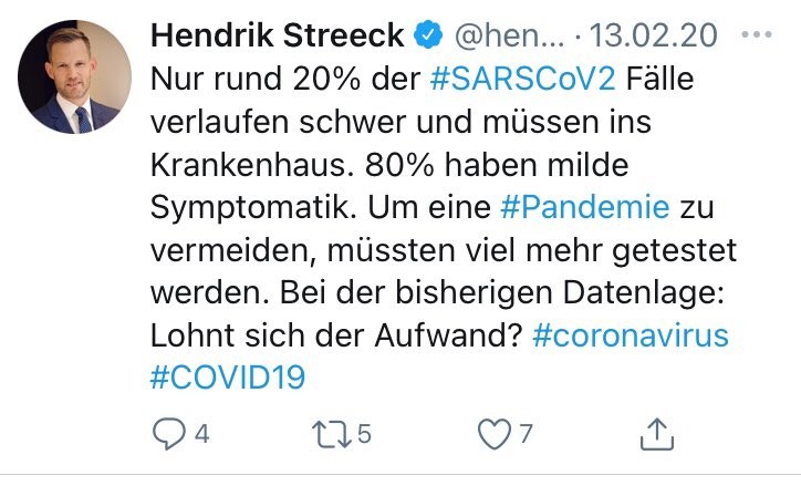 1 Jahr ist dieser Klassiker von #Streeck jetzt alt: 20 Prozent der Deutschen müssten ins Krankenhaus. Lohnt da überhaupt ein Aufwand?