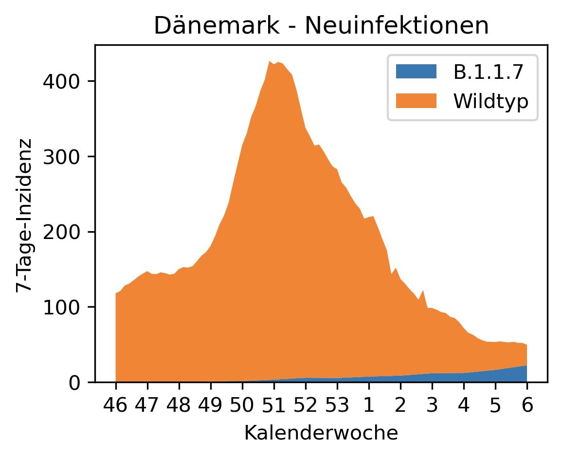Fallzahlen in Dänemark steigen trotz verstärktem Lockdown, während #B117 anteilsmäßig den stärksten Sprung macht.