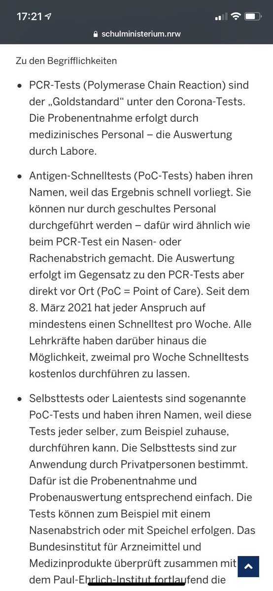 In der #Schulmail vom 15.03.21 wird seitens des Ministeriums ein Unterschied zwischen #Selbst- und #Schnelltests vorgenommen, der 1/x
