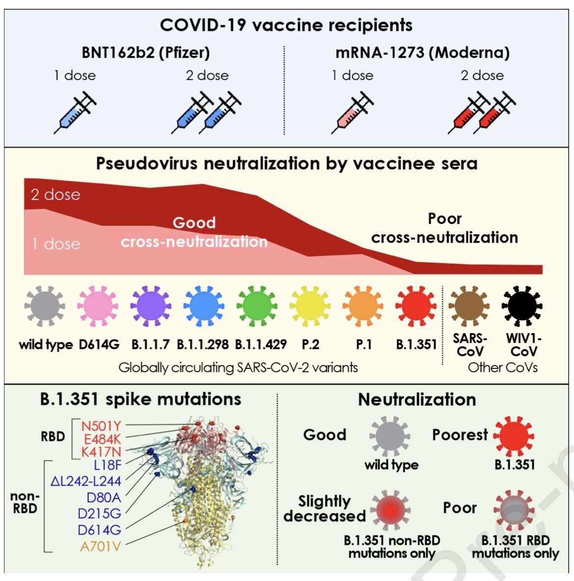 Auf vielfachen Wunsch hier die Quellen: Deutliche geringere Wirksamkeit bei Moderna/Biontech. Es gibt eine Restwirkung, es ist aber unklar, wie stark die Schutzwirkung ist. https://twitter.com/drericding/status/1371209487491735553?s=21