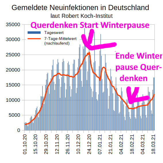 ".. in der Beweislast, dass ohne! #Demonstrationen von #Querdenken, Infektionszahlen, Belegungen von KH Betten .. sowie Sterbefälle .. kurzfristig, innerhalb von wenigen Wochen rapide #absinken .."