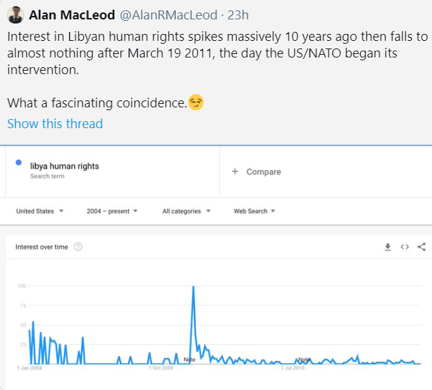 Ten years since the launch of NATO's illegal, catastrophic war to overthrow the government of Libya and grab the oil. Do you remember the long, long list of liberal commentators deeply troubled by the human rights situation in Libya?