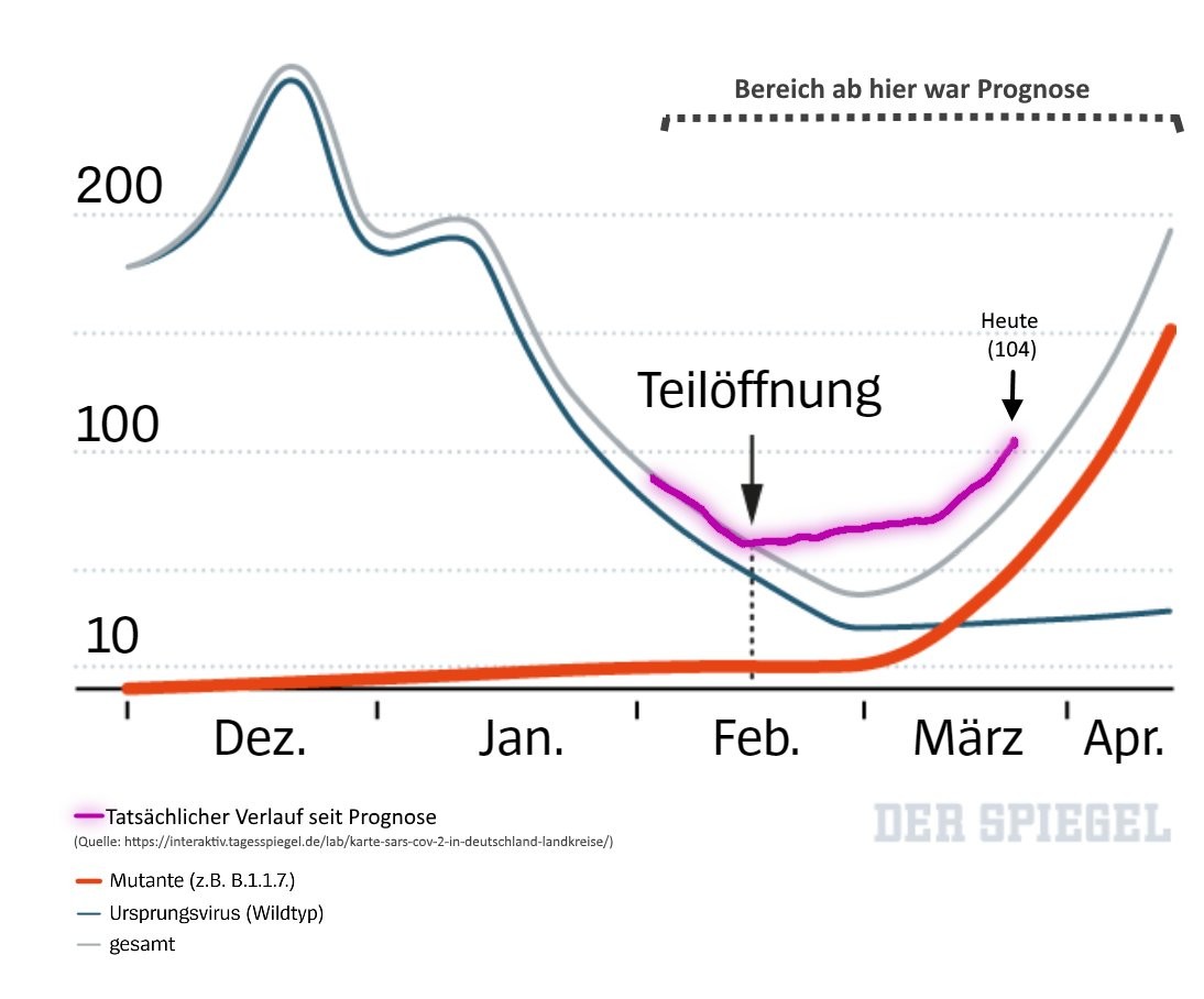 Seit der Teilöffnung hat sich das Infektionsgeschehen sogar noch schlechter entwickelt als prognostiziert. https://twitter.com/FrauStahlhut/status/1373289070412062720