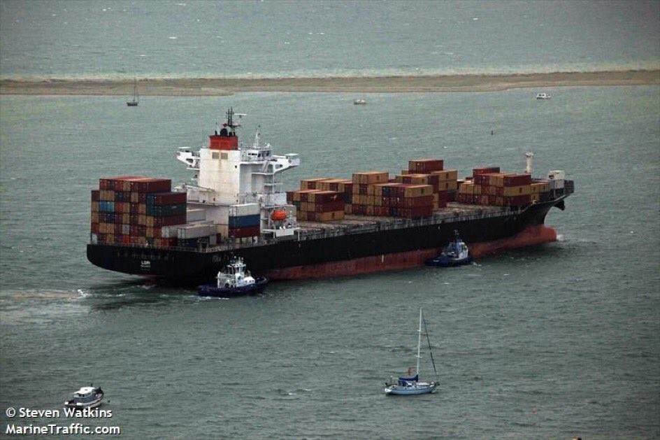 #UPDATE: The ship is reportedly the large container ship LORI, which is Liberian flagged